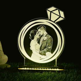 Personalized LED Illusion Lamp Diamond Ring with Wood Light Stand